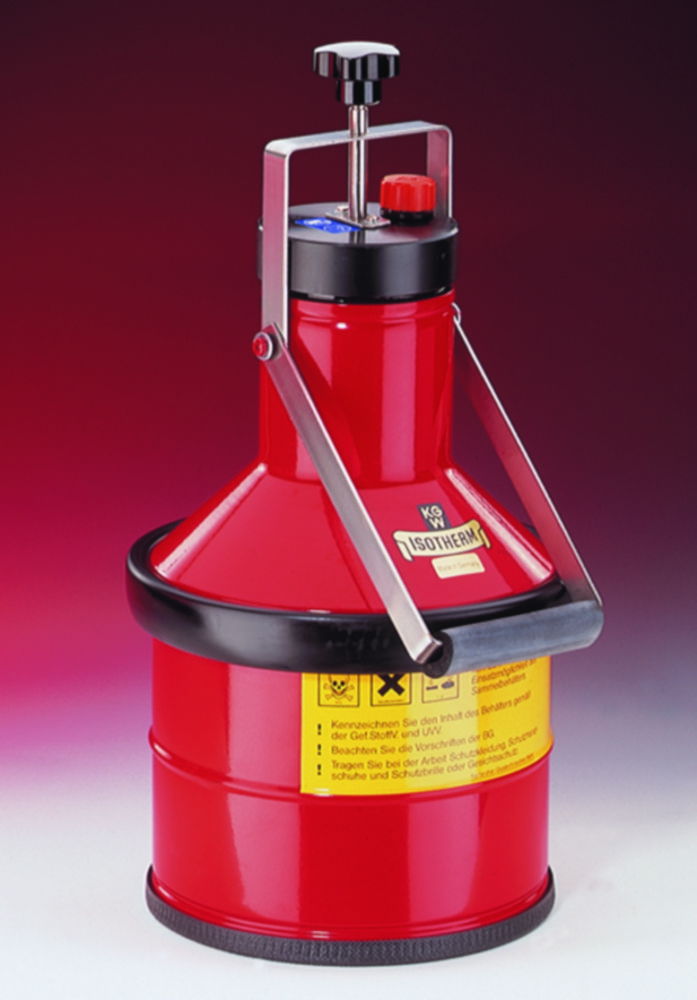 The KGW Schieder Disposal Cans with orange coatings type E1 are designed for safe and secure disposal of hazardous materials. With an 8-liter capacity and a durable construction, these cans are ideal for use in laboratories, industrial settings, and other environments requiring proper waste management. The orange coating provides high visibility, making it easy to identify the cans in any setting.